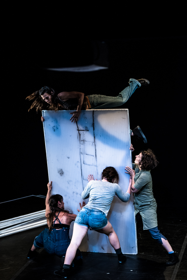 Una propuesta en la que se unen danza, teatro y escenografía practicable. 10 paneles de policarbonato que soportan a la vez que son soportados, transforman el espacio y generan imágenes evocadoras.